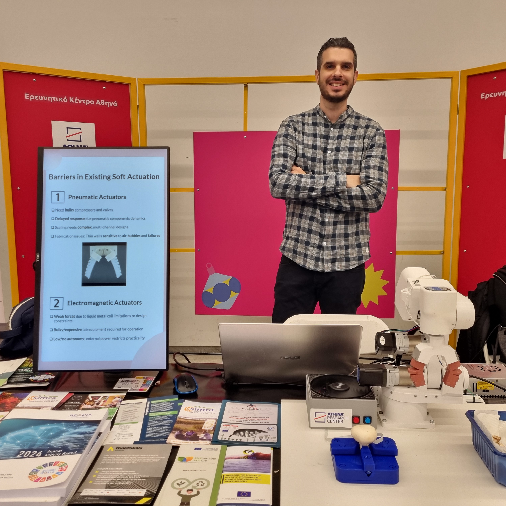 On Friday December 19, two groups under the scientific supervision of HERON Deputy Director Prof. Evangelos Papadopoulos, showcased their work: the Biped Robotics team (researchers Katerina Smyrli and Thanassis Mastrogeorgiou) and the Soft Robotics team (researchers Georgios Bolanakis and Spyros Mertiri, with the help of Nikos Dounavis). The Biped Robotics team showcased their ongoing research work and their mini bipedal robot while the Soft Robotics team presented interactive demonstrations of work in soft robotic actuation, explaining core concepts in robotics, actuation, and engineering research.